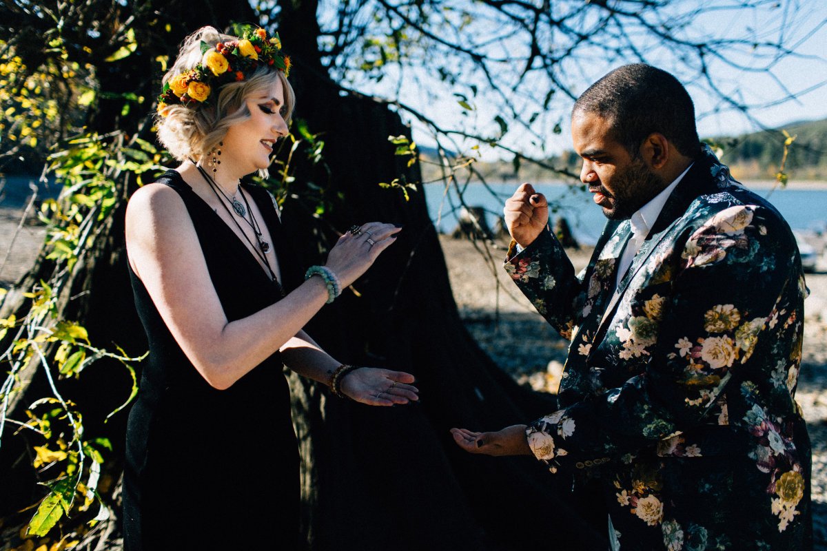 If you have mixed heritage between you both, it could be fun and meaningful to blend elements from each of your backgrounds or cultures into a unique, meaningful ritual. For example, you could do a “unity food tasting,” where you both share bites of traditional foods from each culture. This moment could include family members too alongside fun explanations of why each food is significant to your heritage, making it meaningful and tasty for you and interesting and educational for your guests.