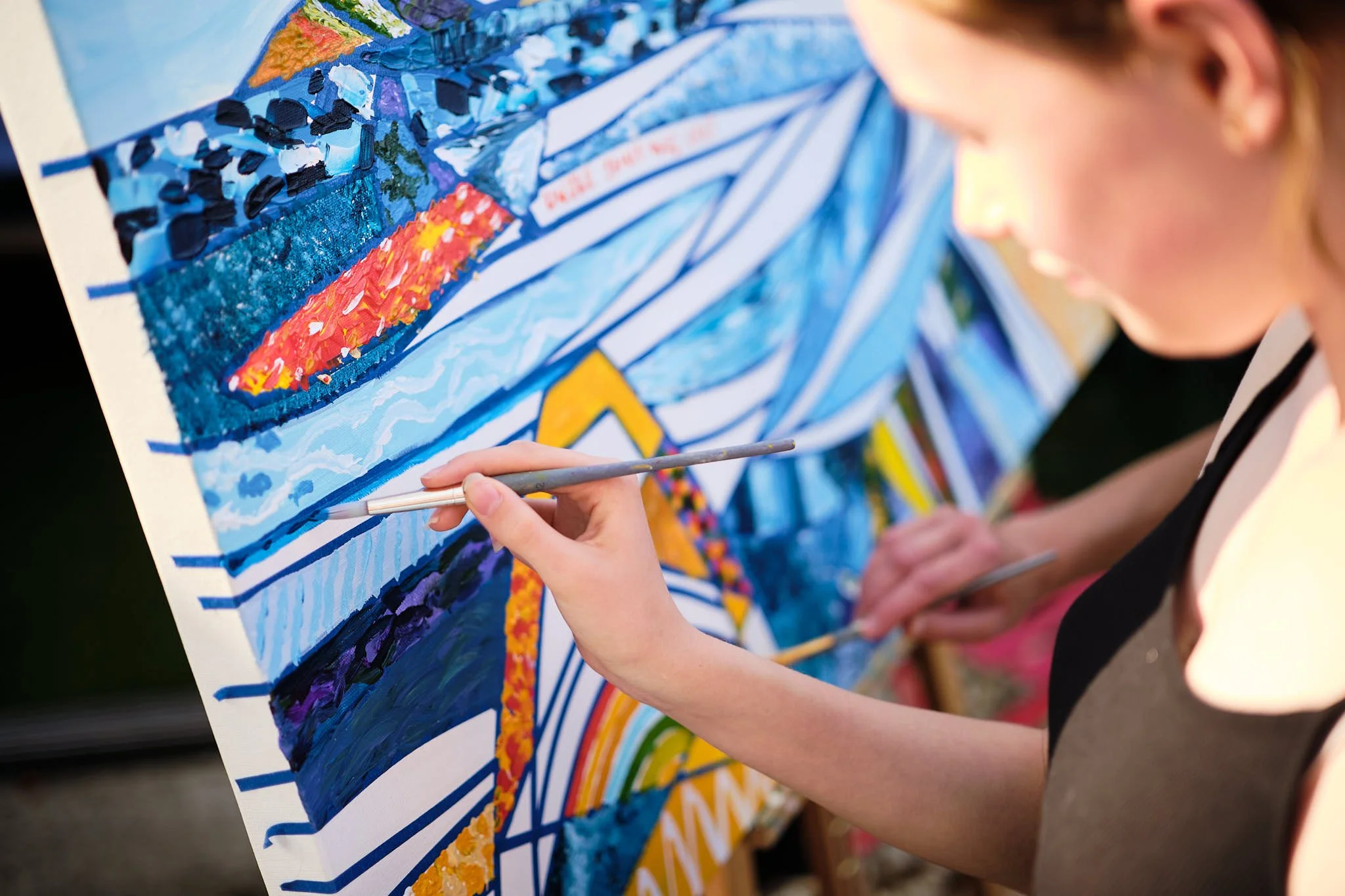 Commission a local painter to create an image that you both like and ask them to split it into sections. You can then paint a tiny section each and collaborate on one small section together during the ceremony to represent your union. This could then be placed in a communal area for your guests to join in and finish the masterpiece during the rest of the day.Credit: Tom Heath Photography