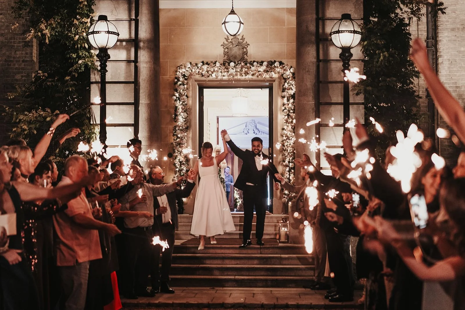 And to prove that the outside of Hedsor House is just as versatile, Simeon and Kathryn made use of the gorgeous grounds after dark too, with their guests forming a tunnel of sparklers for them to do a celebration walk through. What a way to end the celebrations!